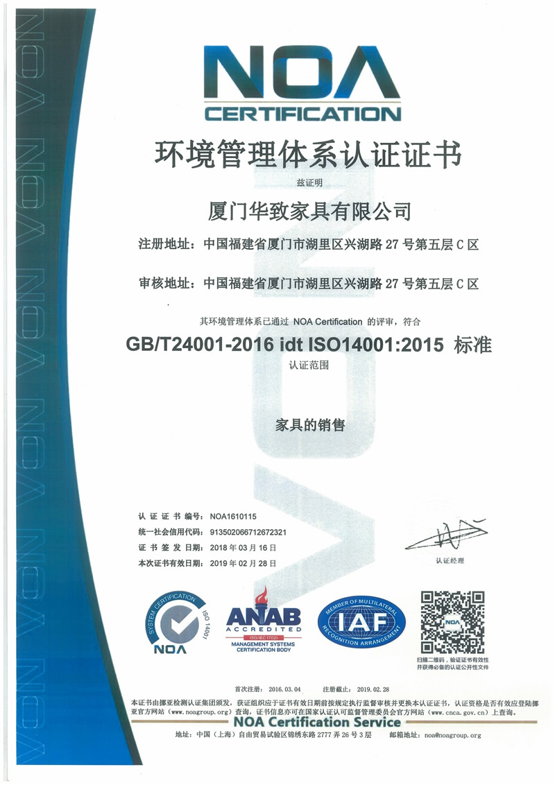 環(huán)境管理體系認證證書