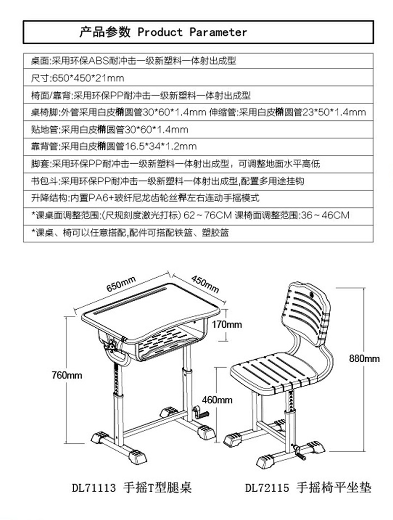 DL71113手搖T型腿桌